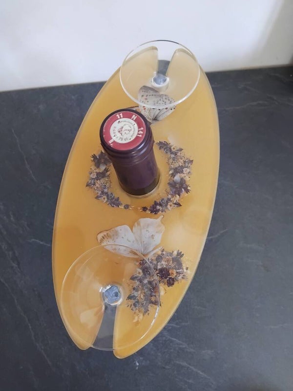 Support pour bouteilles + 2 verres, idéal pour soirée en amoureux ou entre amis.
