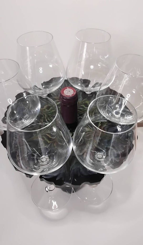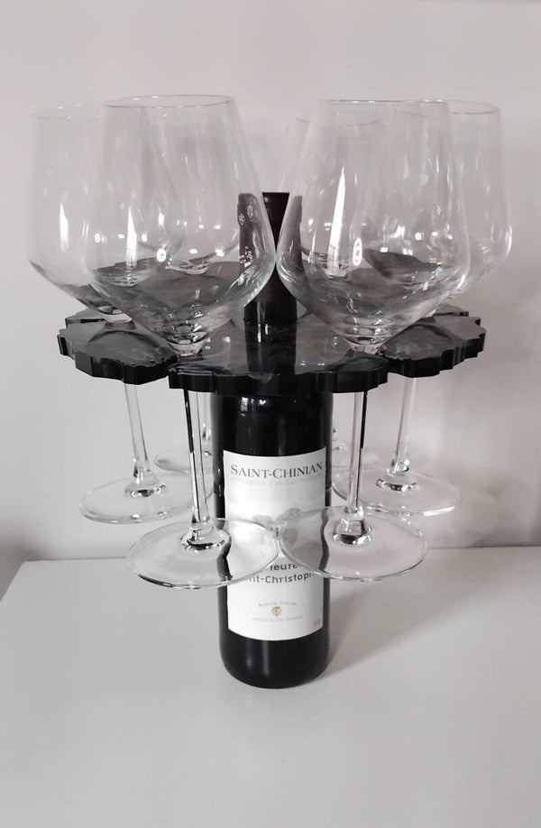 Support pour bouteille de vin et 6 verres, idéal pour recevoir amis et famille, il ne laissera personne indifférent, très classe!