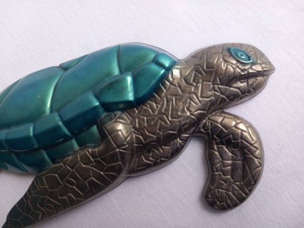 Grand magnette tortue aimantée aux couleurs métallisées: vert et bronze/champagne, avec 2 aimants à l'arrière.
