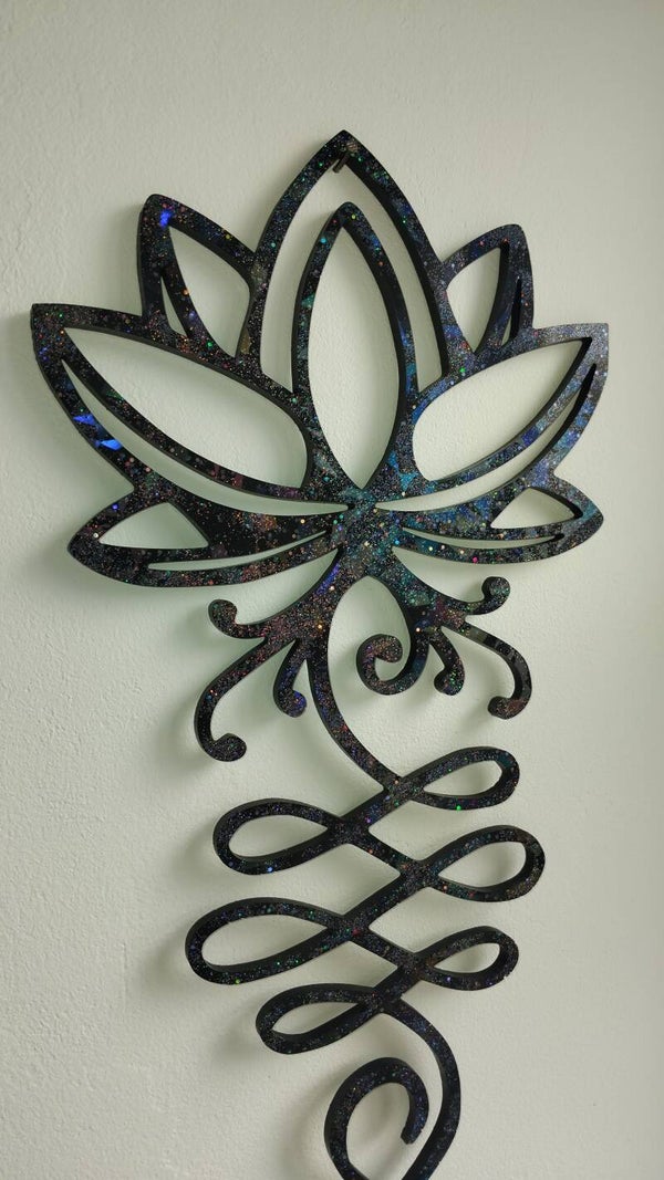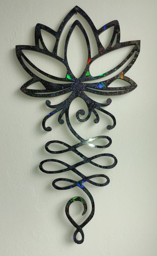 Fleur de lotus holographique noir + paillettes holographiques argentées