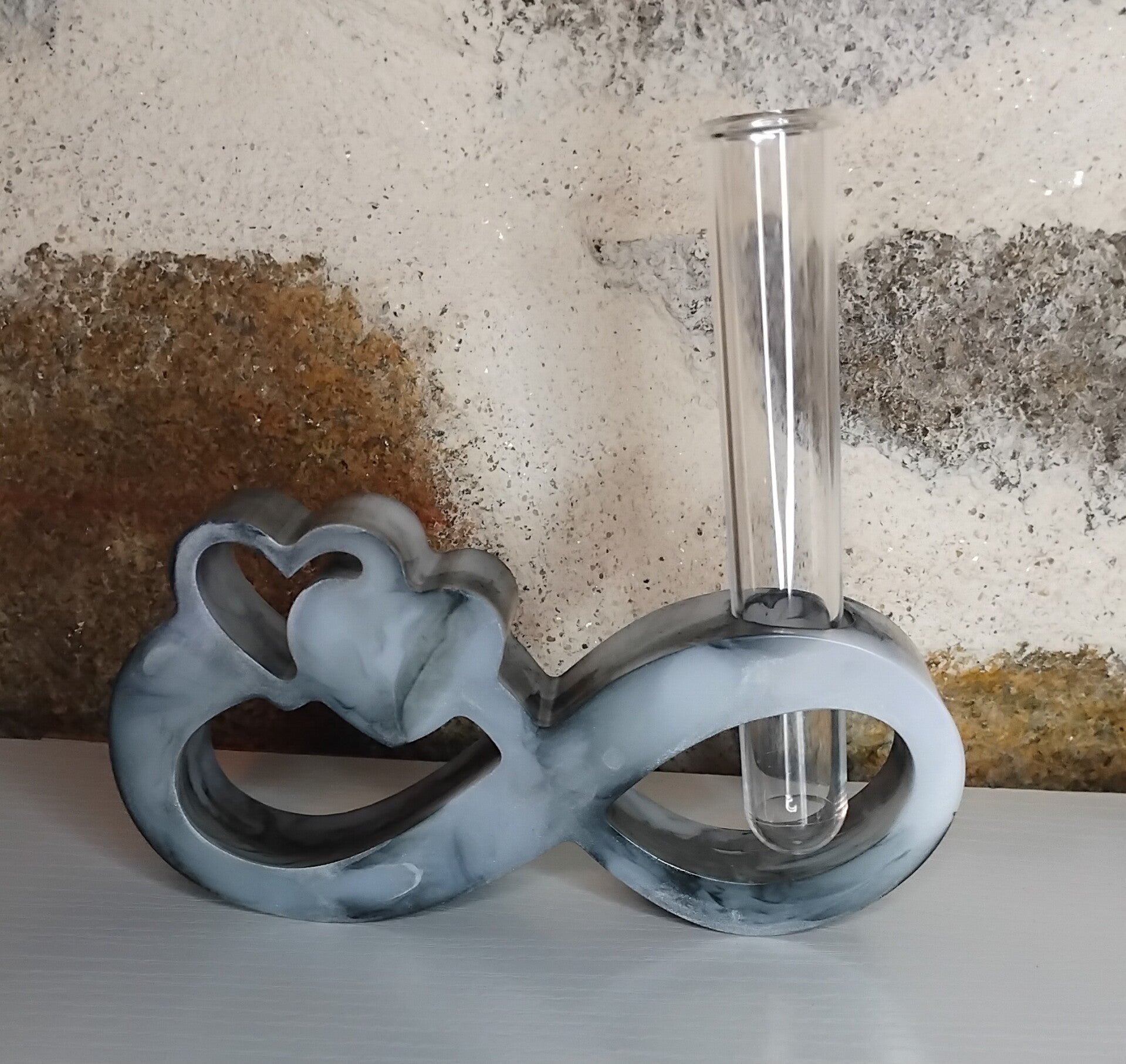 Soliflore "Amour à l'infini" marbré noir, blanc et argent.