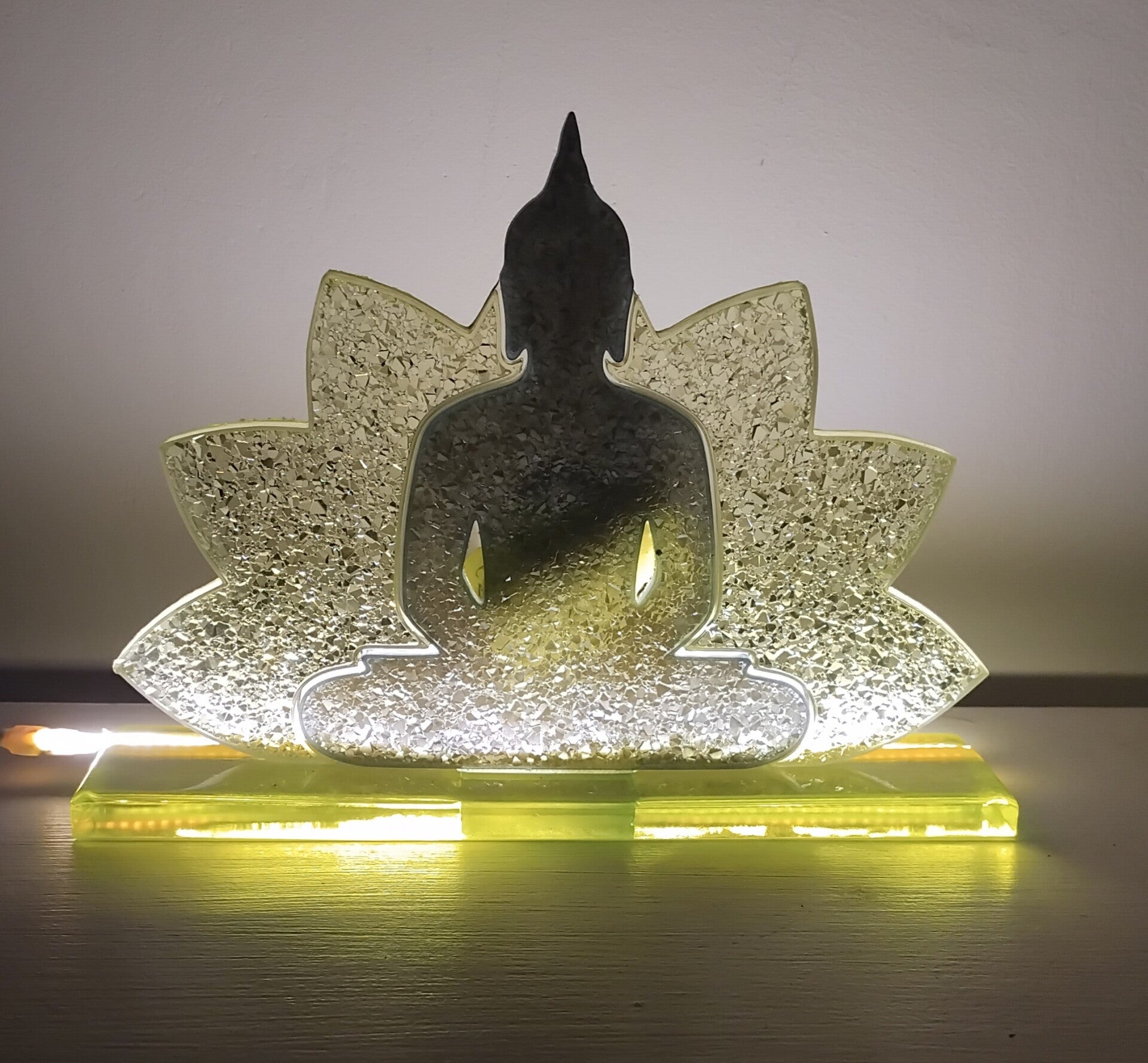 Bouddha effet diamant đź’Ž sur socle LED avec interrupteur et prise USB, Un bel effet apaisant pour une chambre ou un salon.